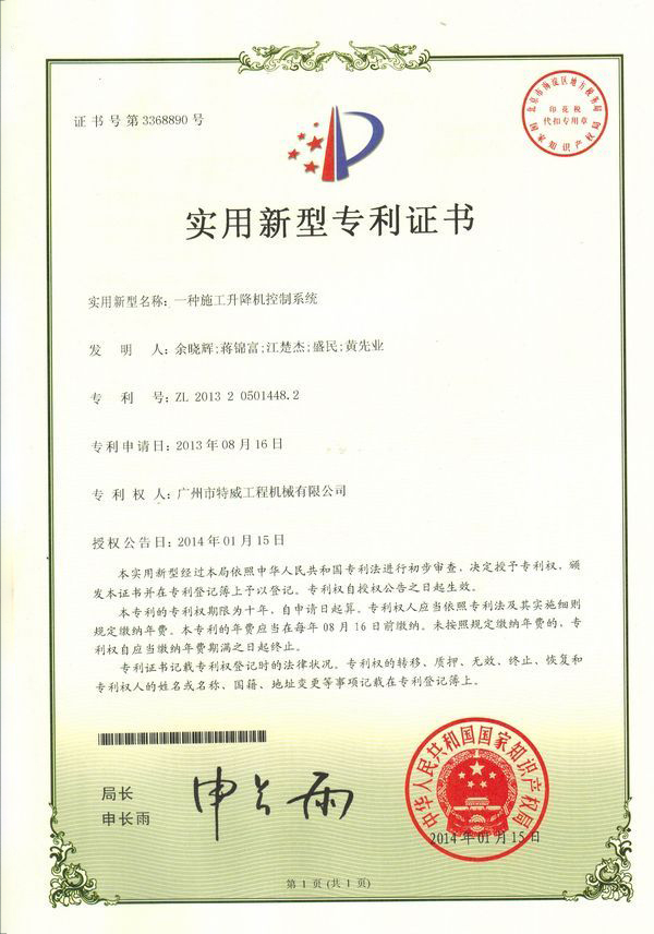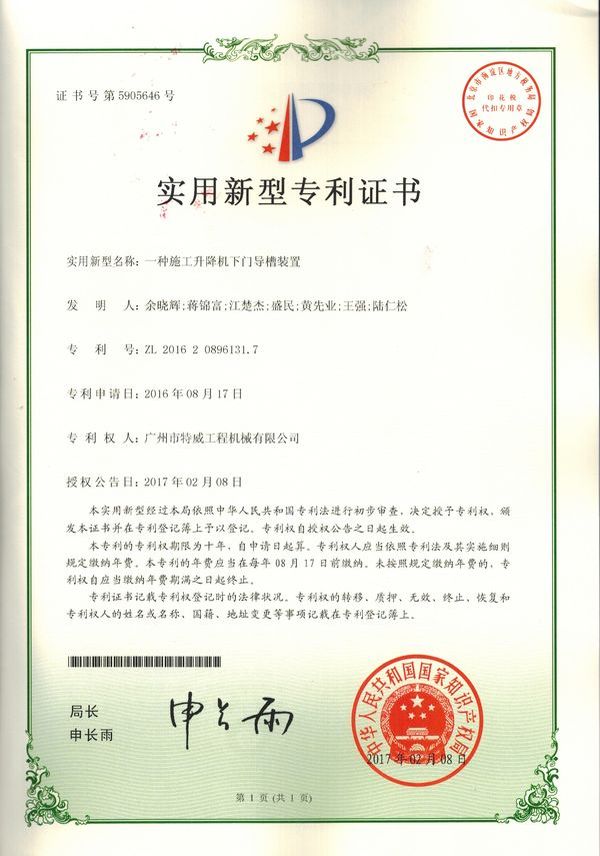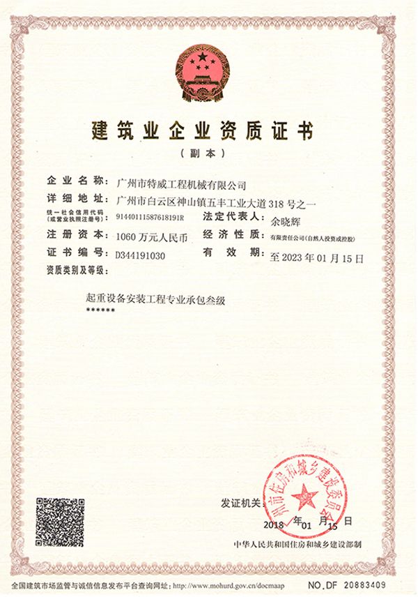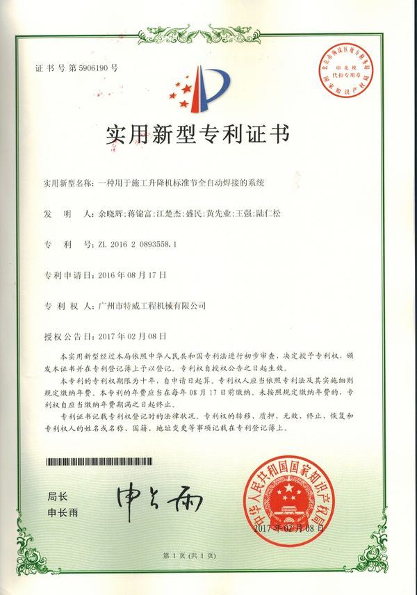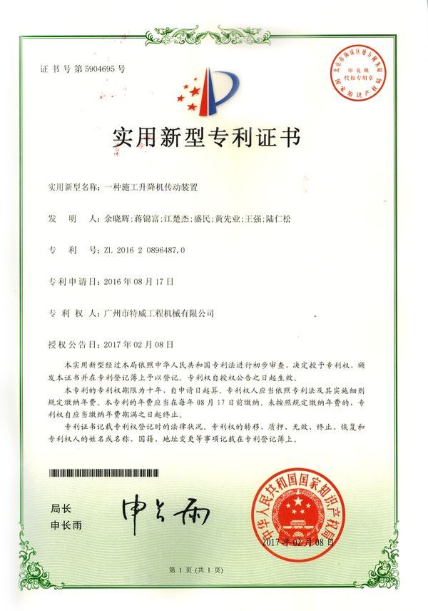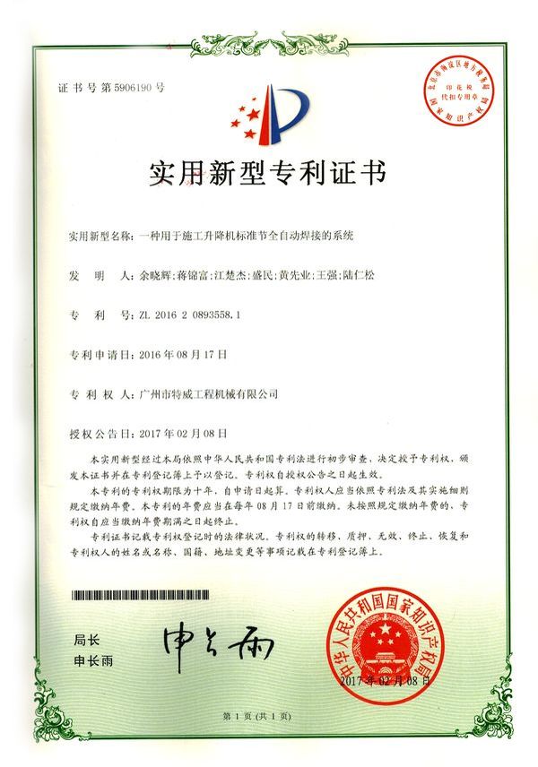 廣州市特威工程機(jī)械有限公司地處廣州市白云區(qū)神山鎮(zhèn),廣清高速神山出口附近,是一家施工升降機(jī)的專(zhuān)業(yè)生產(chǎn)廠家。公司成立于2011年,占地100000多平方米,注冊(cè)資金1060萬(wàn)元,現(xiàn)有員工300余人其中工程技術(shù)人員33人,高級(jí)技術(shù)人員52人。