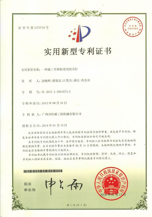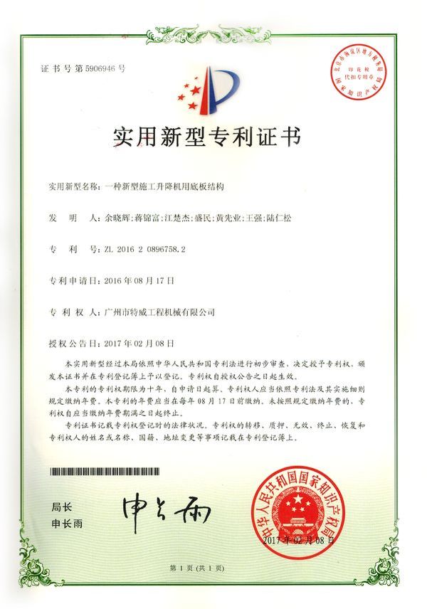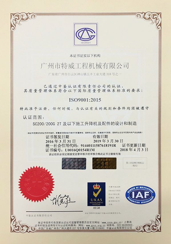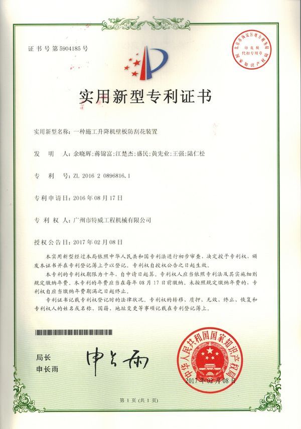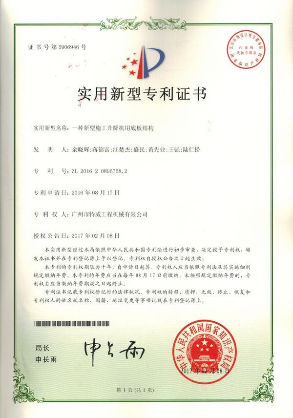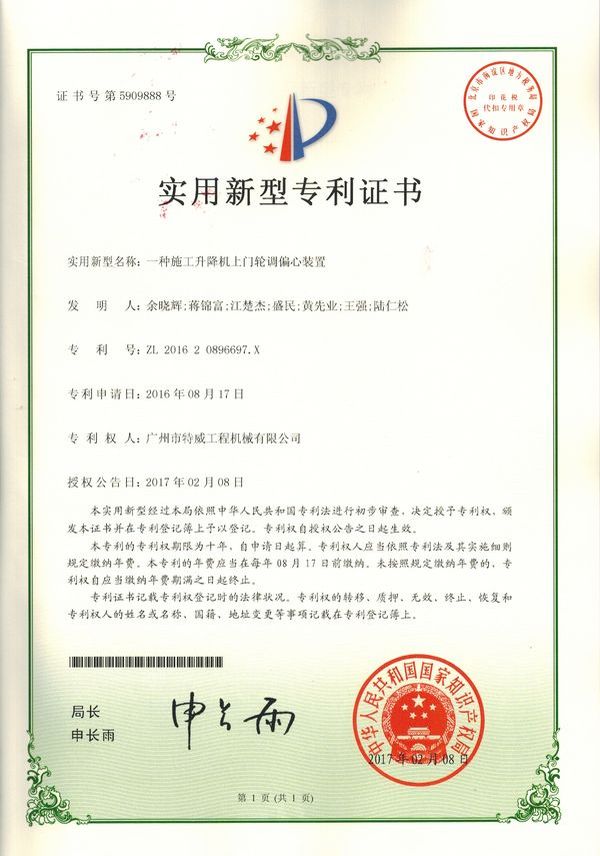 廣州市特威工程機(jī)械有限公司地處廣州市白云區(qū)神山鎮(zhèn),廣清高速神山出口附近,是一家施工升降機(jī)的專(zhuān)業(yè)生產(chǎn)廠家。公司成立于2011年,占地100000多平方米,注冊(cè)資金1060萬(wàn)元,現(xiàn)有員工300余人其中工程技術(shù)人員33人,高級(jí)技術(shù)人員52人。